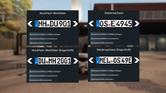 Kennzeichen NRW amp Niedersachsen adalah modifikasi untuk Bus Simulator 21 yang menambahkan plat nomor dari negara bagian Nordrhein-Westfalen dan Niedersachsen. Program ini menawarkan pilihan font yang bervariasi, termasuk font sempit dan normal, serta mendukung karakter khusus seperti Ä, Ö, Ü, E, dan H. Pengguna dapat dengan mudah memilih format plat nomor sesuai dengan preferensi mereka, dengan struktur yang mengikuti aturan yang berlaku di Jerman. Selain itu, program ini memungkinkan penyesuaian karakter dengan batasan maksimal 8 karakter untuk setiap plat nomor.